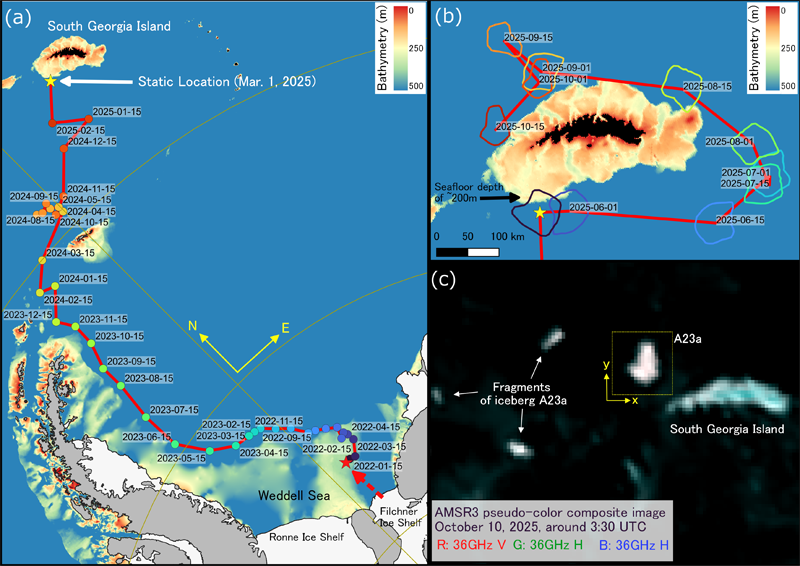 The Breakup of the World’s Largest Iceberg, “A23a”: The Trajectory of Iceberg A23a Observed by “GCOM-W”, “ALOS-2”, “ALOS-4” and the Latest Satellite, “GOSAT-GW”