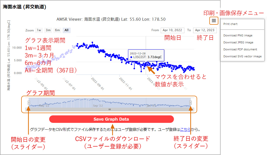- 右上のメニューから、グラフの印刷と画像保存が可能です。