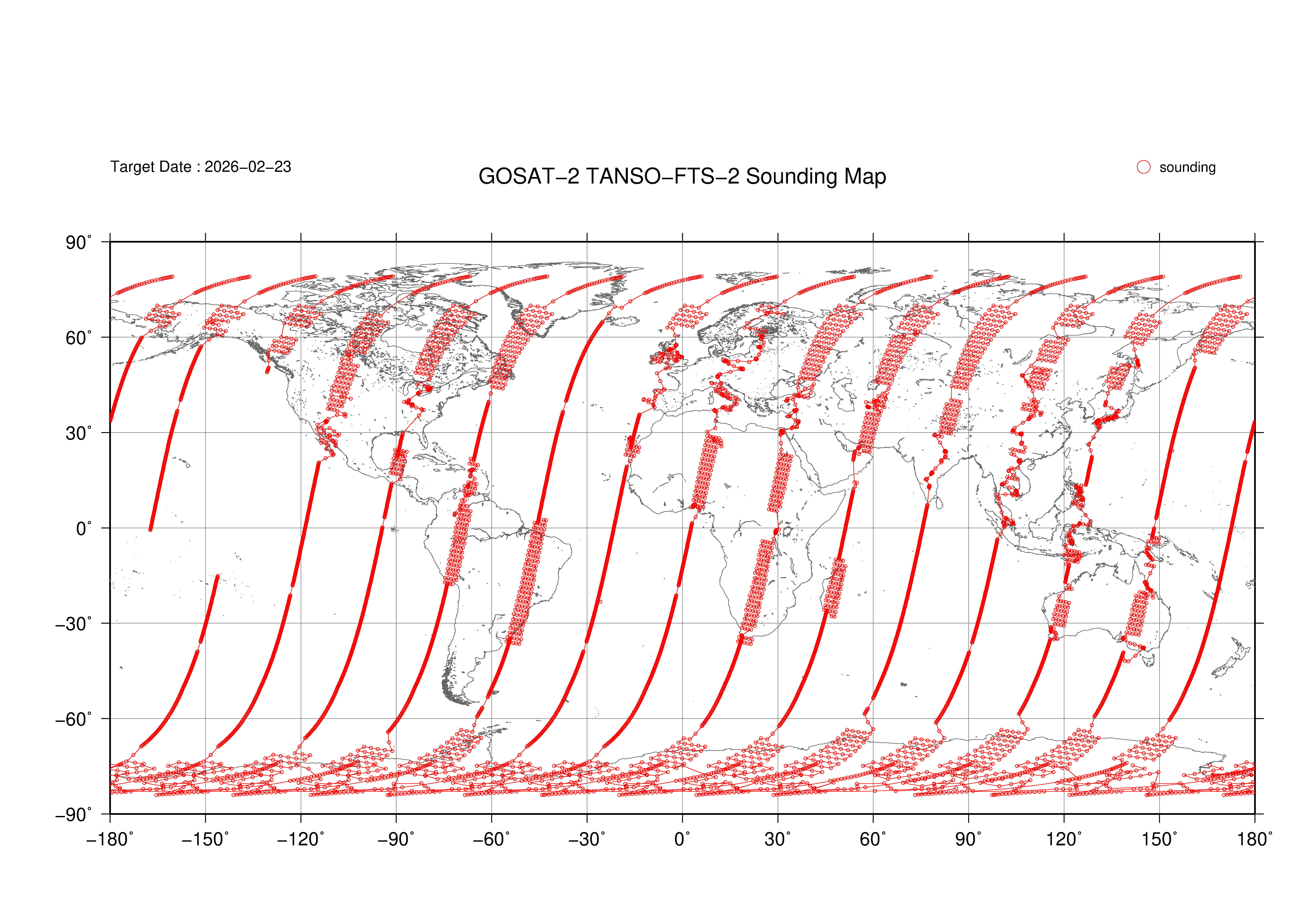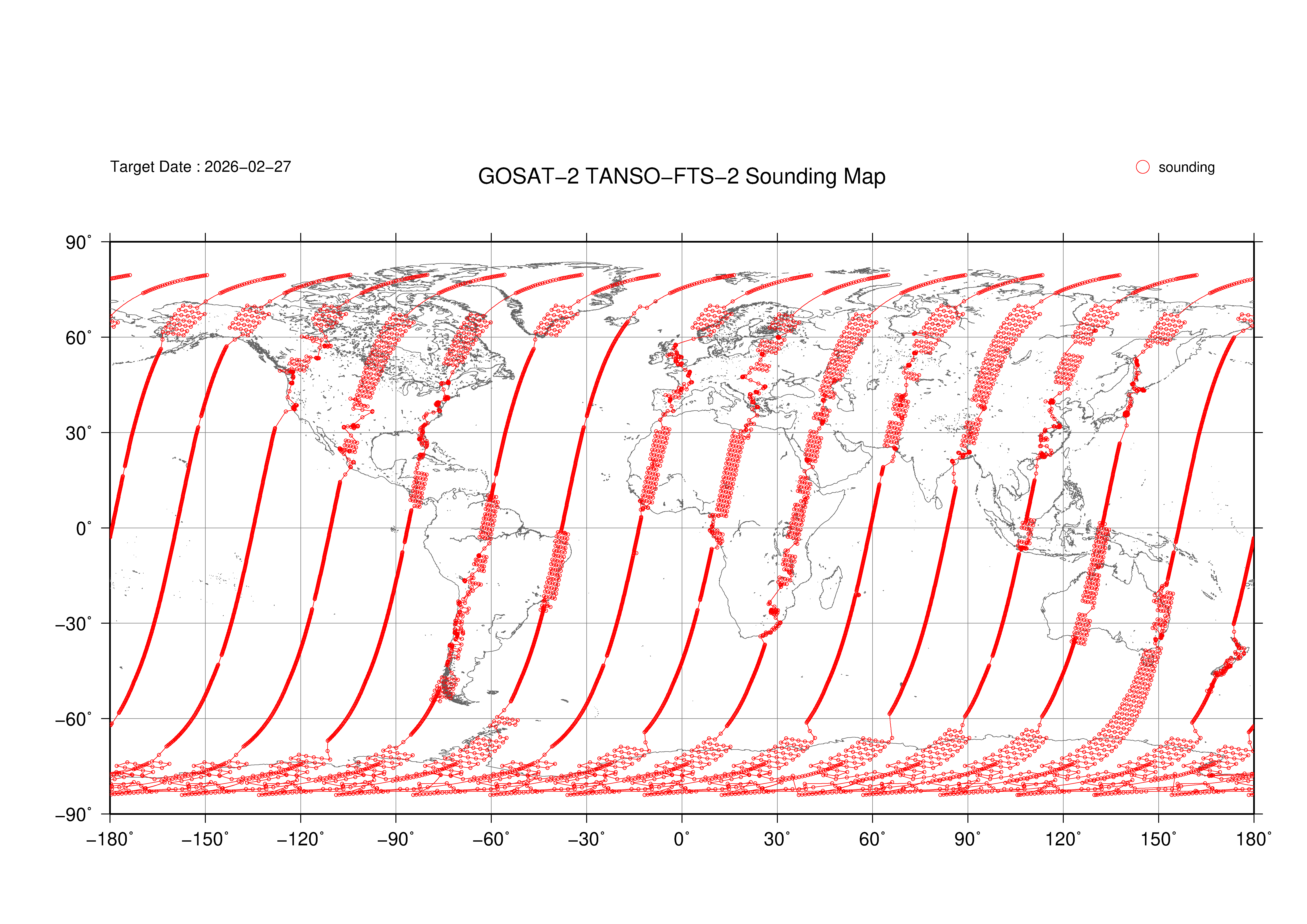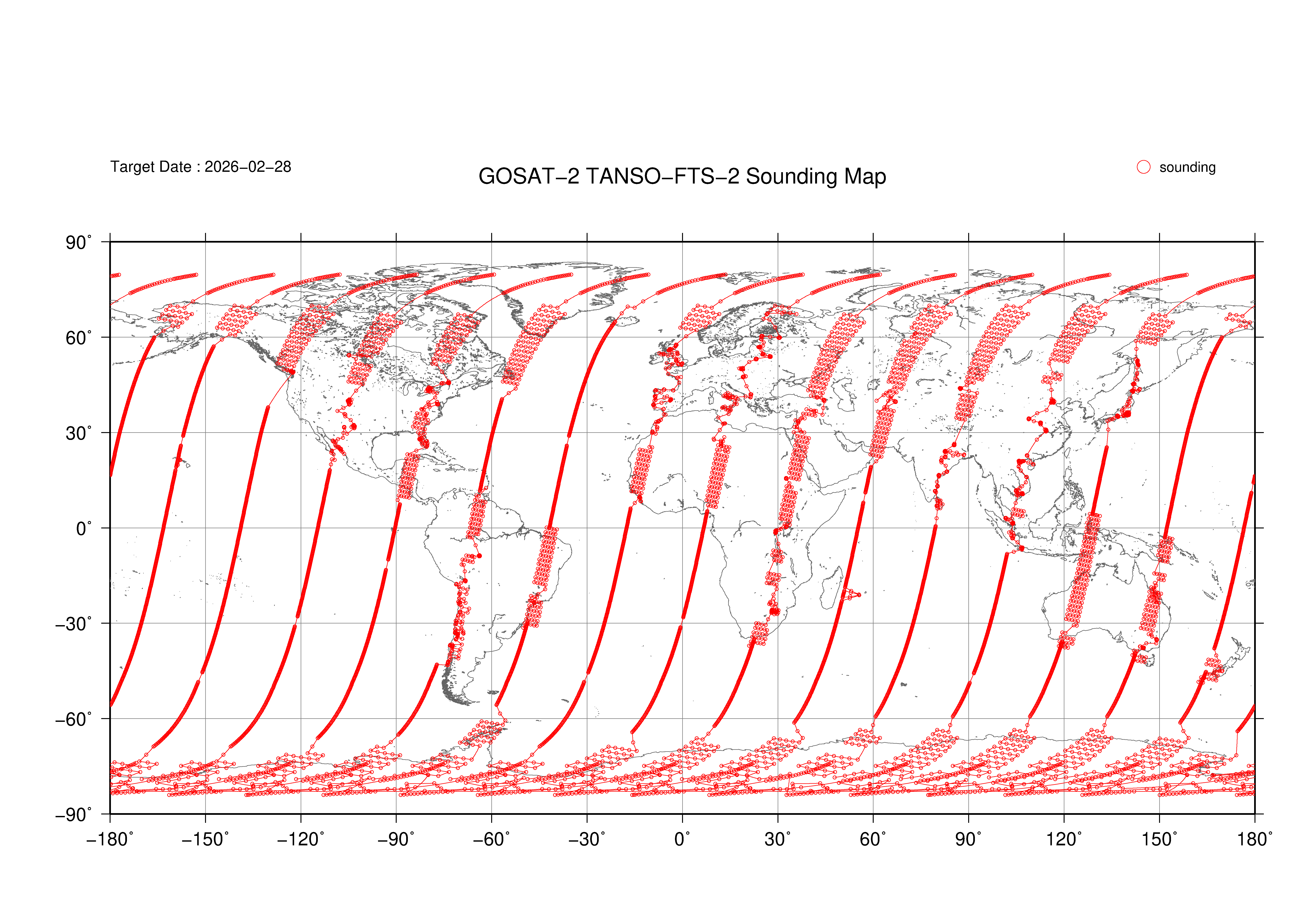 TANSO-FTS-2 Observation map 2019 - 2026
