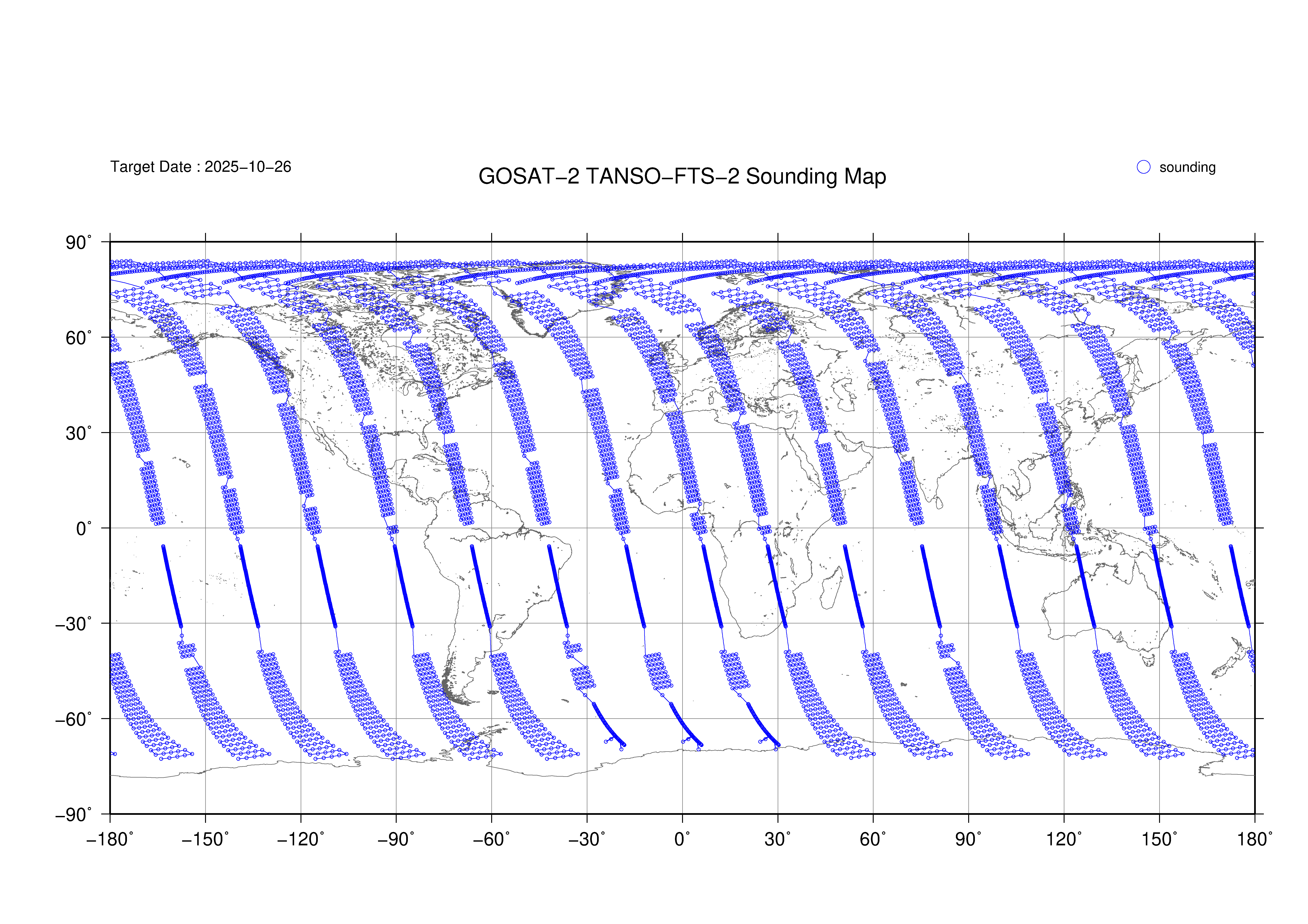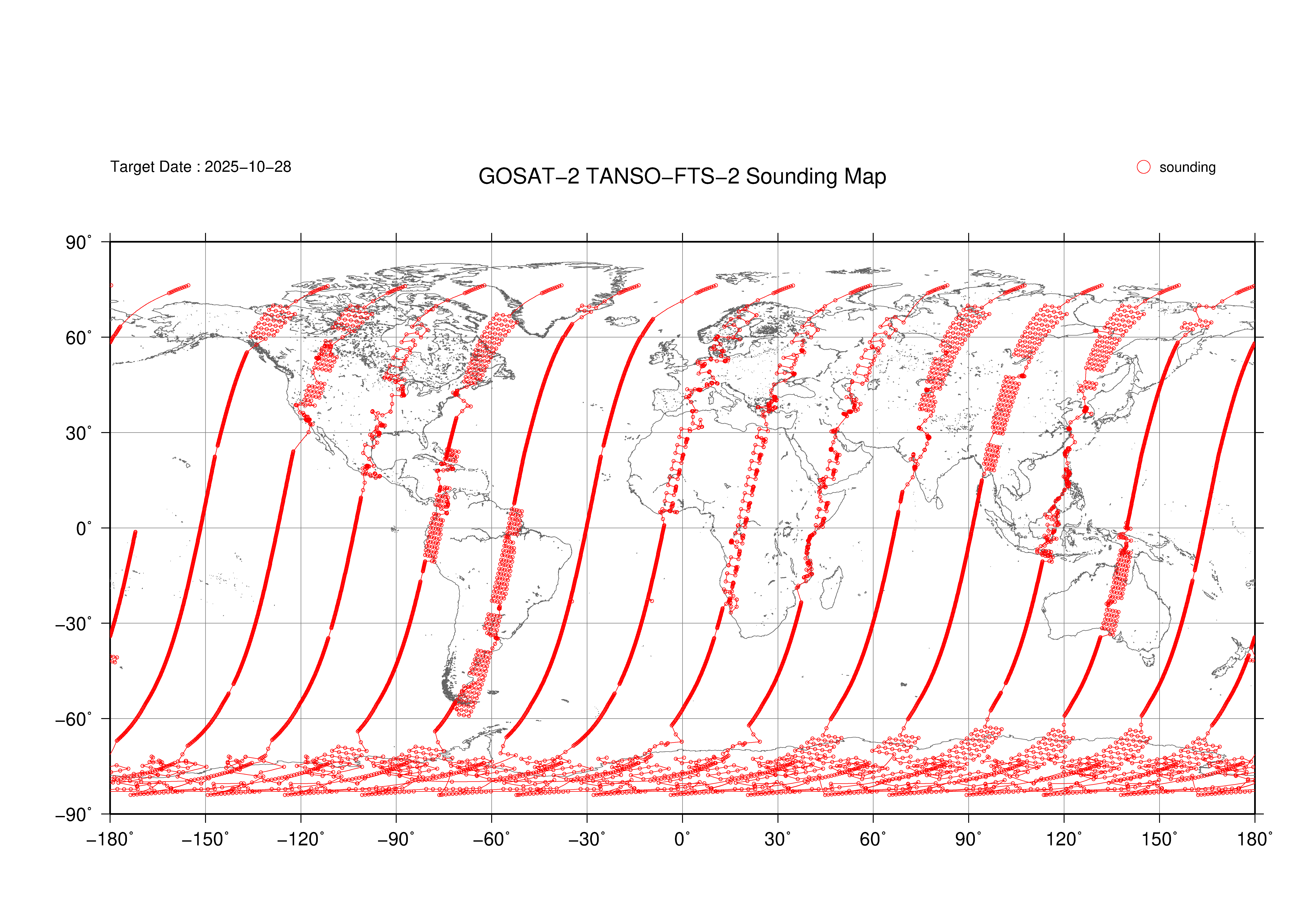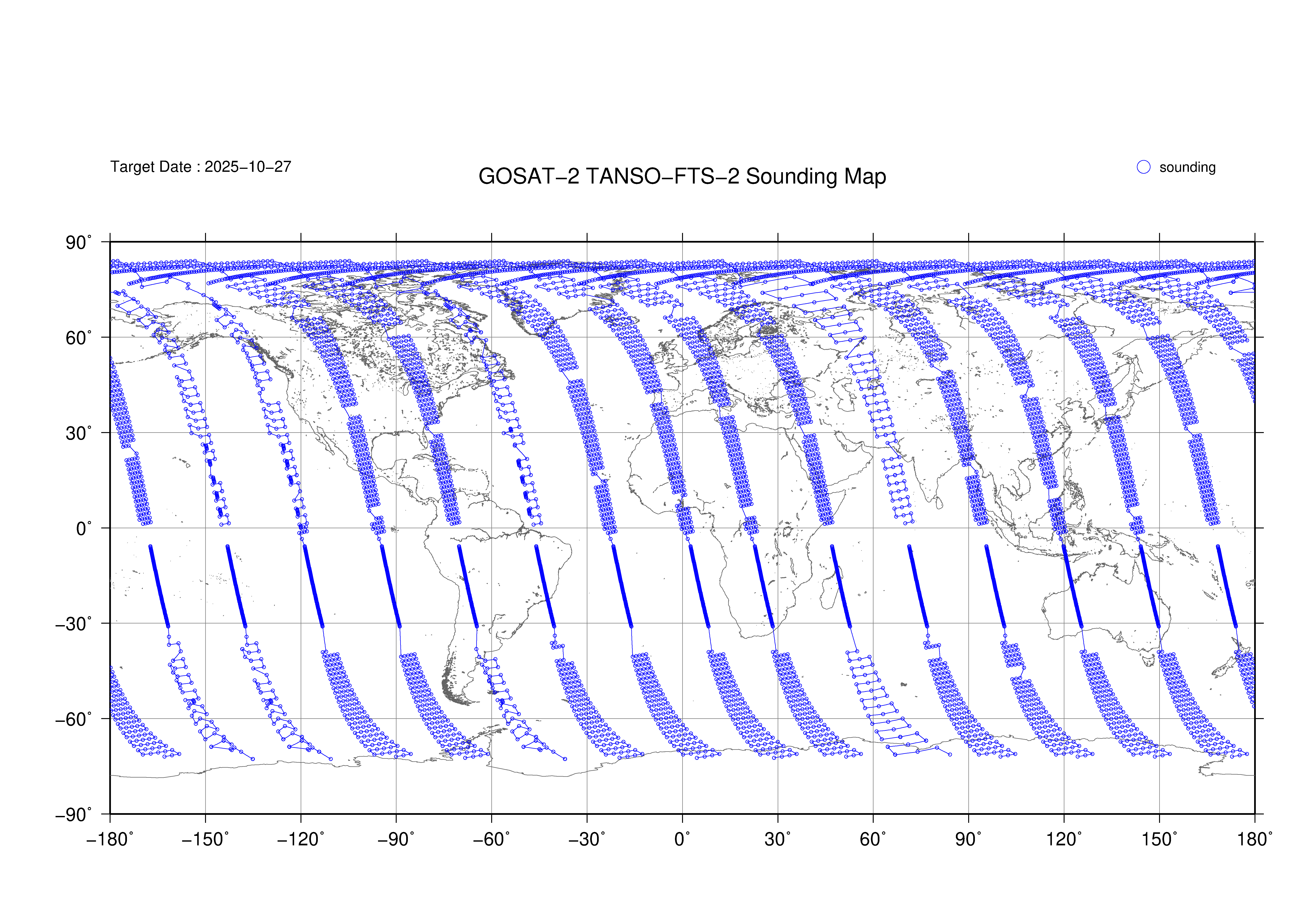 TANSO-FTS-2 Observation map 2019 - 2025