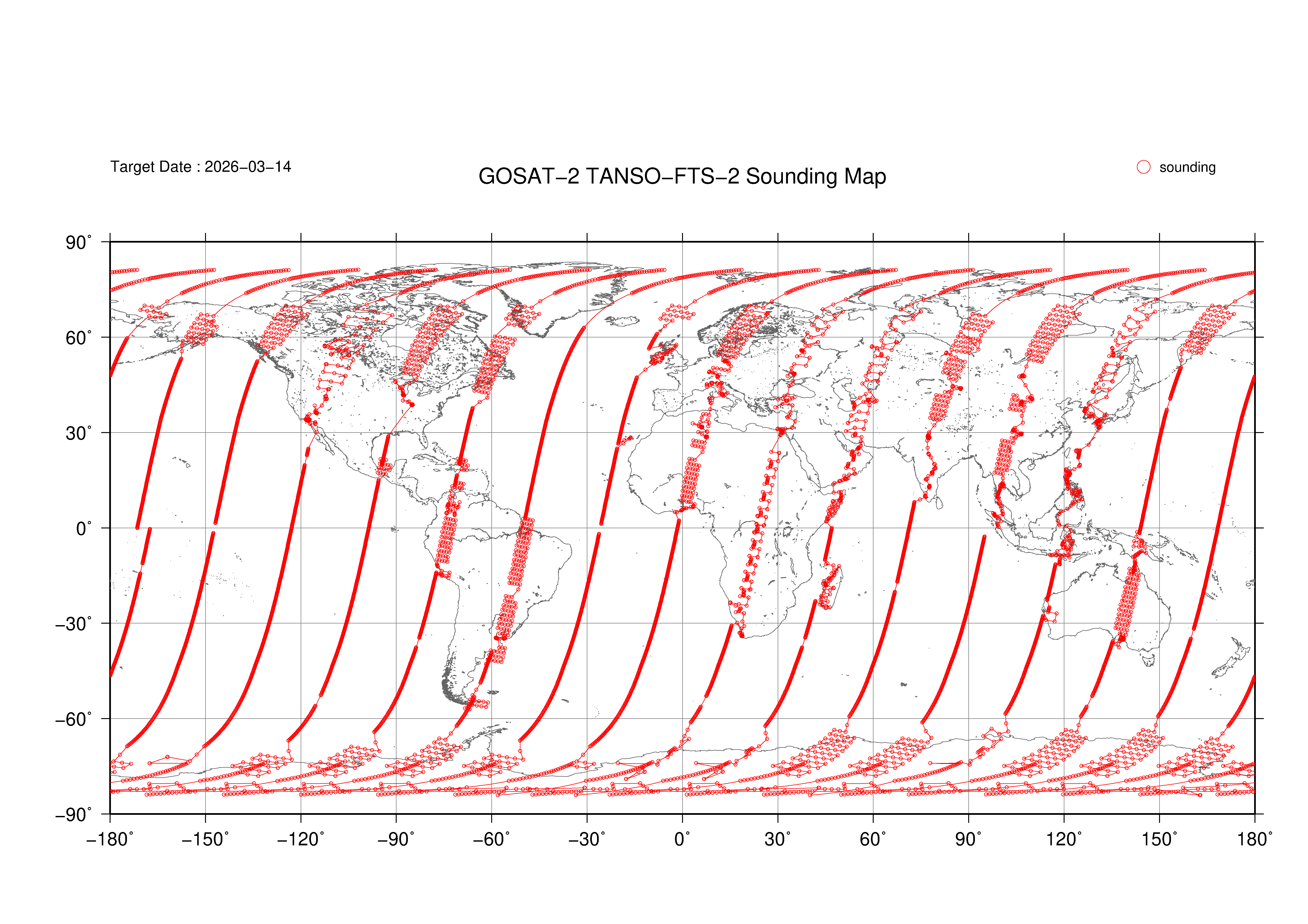 TANSO-FTS-2 Observation map 2019 - 2026