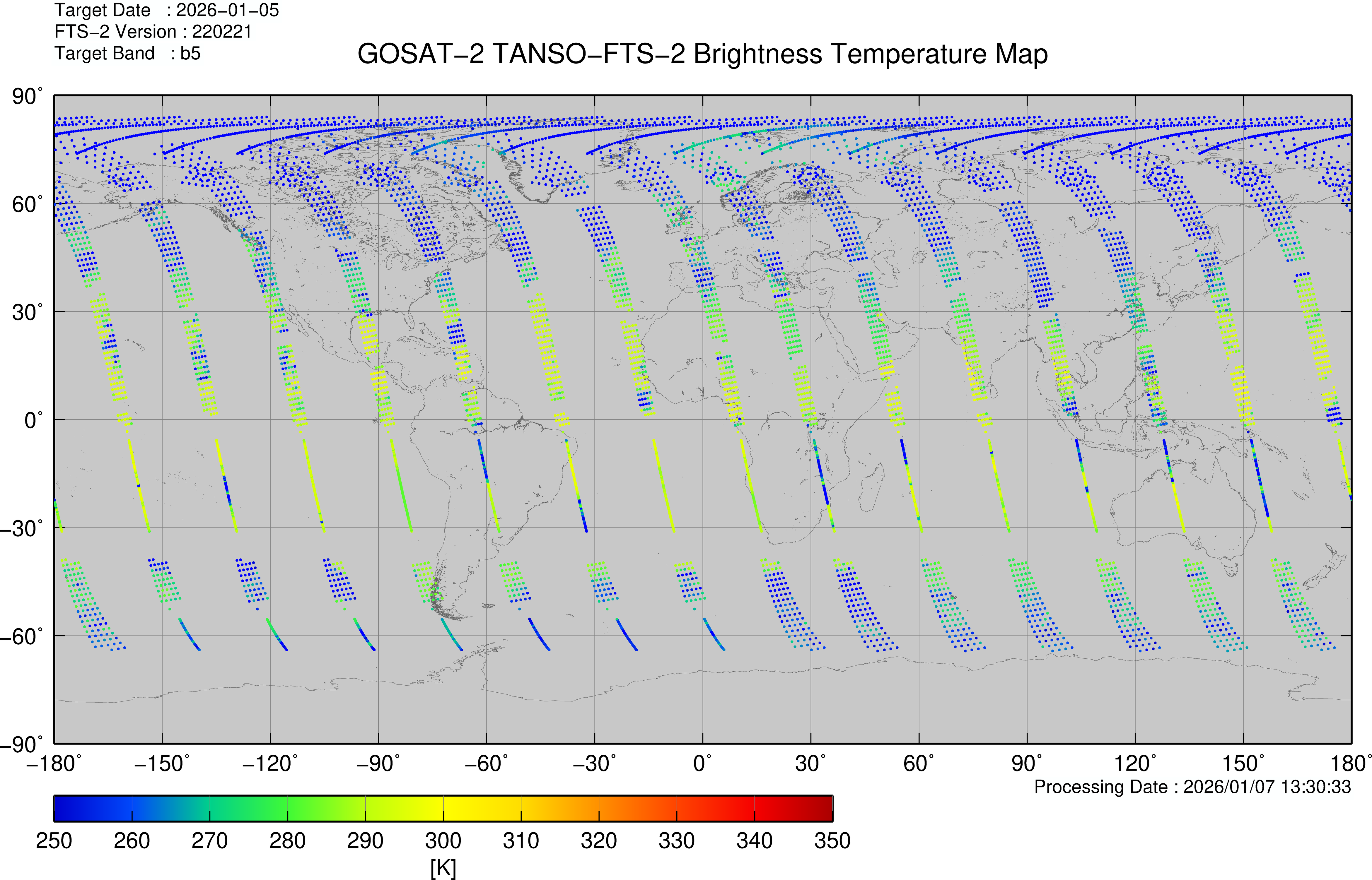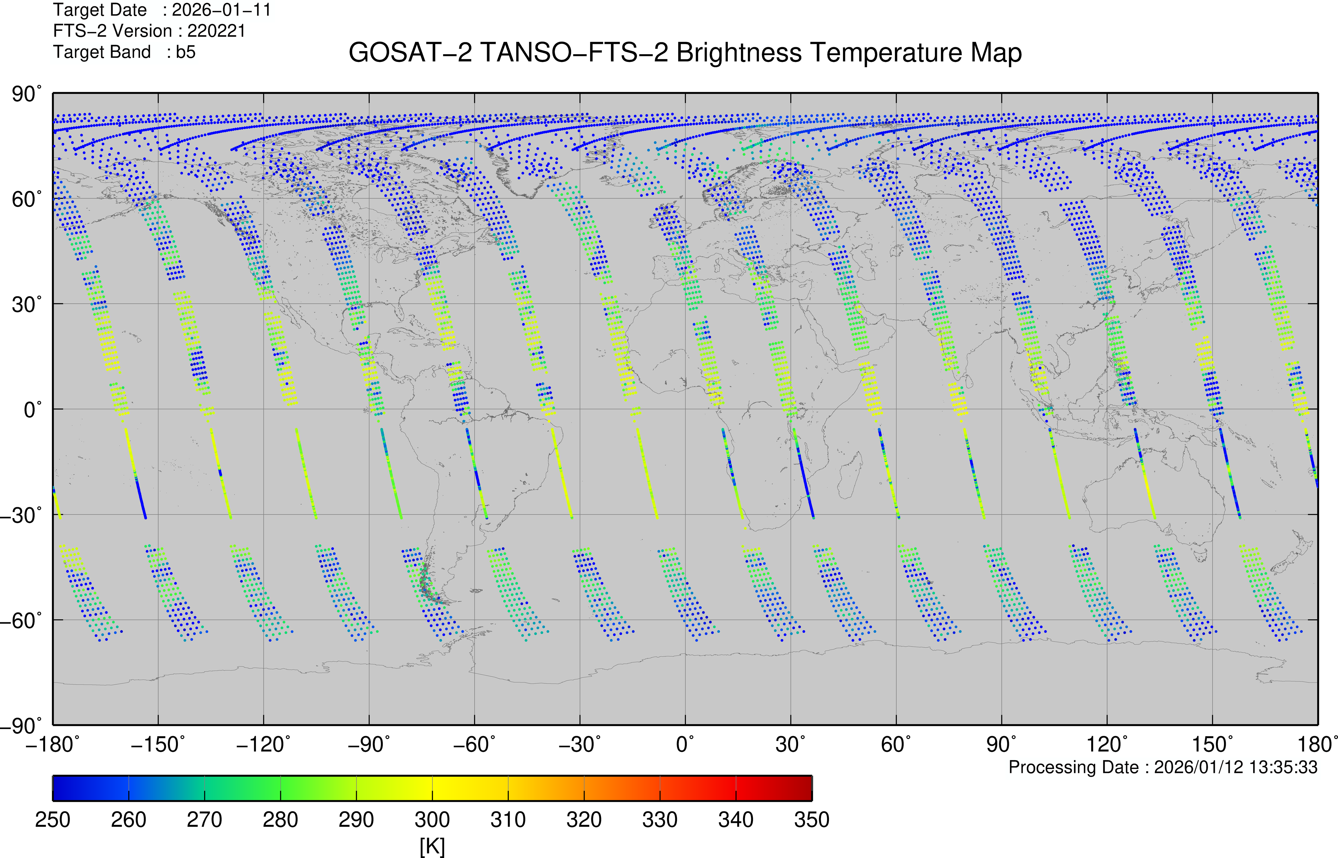 TANSO-FTS-2 Brightness Temperature map 2019 - 2026