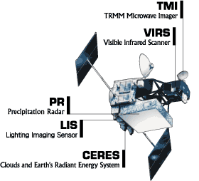 Precipitation Radar Visible Infrared Scanner TRMM Microwave Imager Lightning Imaging Sensor Clouds and the Earth's Radiant Energy System Combined / PR, VIRS and TMI |
