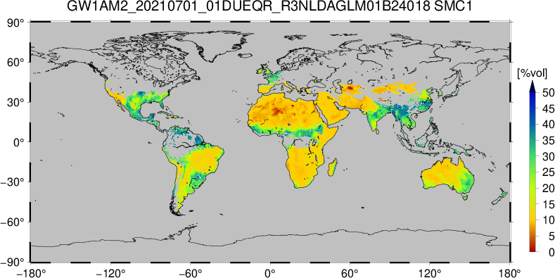 陸面モデルと衛星観測を組み合わせて推定した土壌水分量(5層)と植生水分量を提供します。本プロダクトは、東京大学 澤田洋平 准教授らが開発している陸域データ同化システム(CLVDAS:Coupled Land and Vegetation Data Assimilation System)によって生成された陸域再解析データ(ECHLA:ECoHydrological Land reAnalysis)から抜粋したものです。